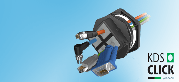 ContaClip introducerer nu kabelgennemføringssystemet KDSClick. KDS Click- systemet er modulopbygget og består af kun tre typer komponenter: en ramme, et indlæg & pakninger.