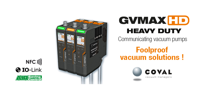 COVALs GVMAX HD-serie Heavy Duty-kommunikerende vakuumpumper er resultatet af mange års observation, diskussioner og feedback fra producenter, maskinbyggere og brugere fra bil-, luftfarts- og emballeringsindustrien.
