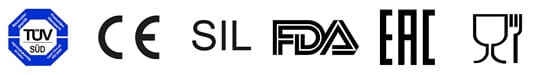 PFA, PFA antistat., Rustfrit stål (Ra <0,4 / Fe <1%), Hastelloy, Duplex (Ra <0,8)