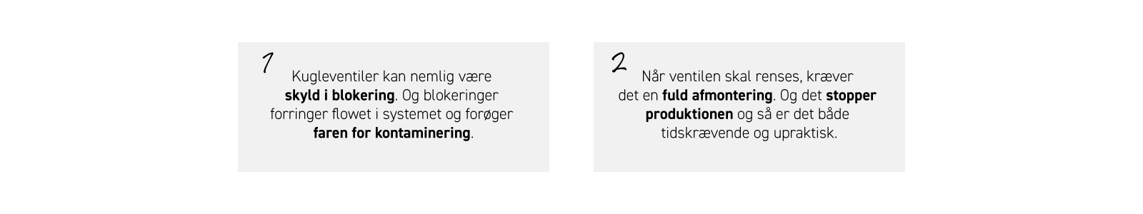 Kugleventilen har døde områder, hvor produkt kan samle sig og skabe bakterievækst. Og det er hovedårsagen til, at kugleventiler nu skal skiftes ud.