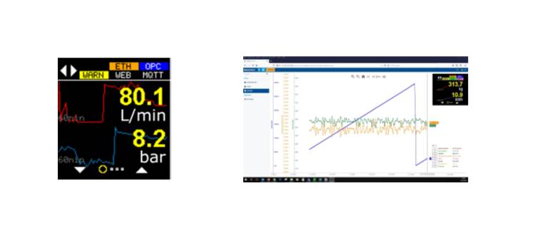 Flow måleren har et integreret OLED-display hvor det er muligt at konfigurere værdier og grafer. Med Ethernet-forbindelse fås adgang til en integreret webserver, hvor det også er muligt at få et visuelt overblik over flow-sensorens målinger.