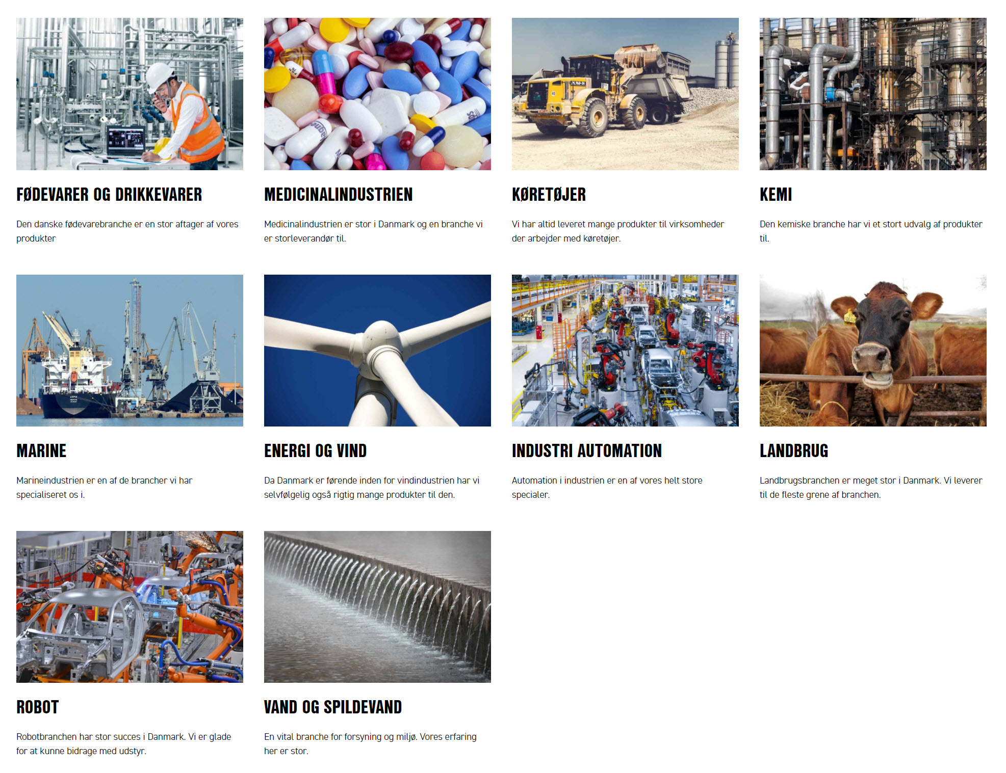 Se vores produkters applikationer fordelt på en række brancher. Se hvilken produktchef du skal tage fat i, for at høre mere.
