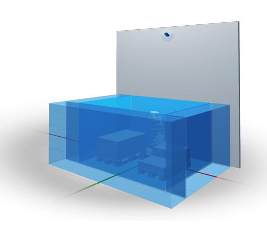 Med Cuboid-teknologien kan overvågningsområdet tilpasses præcist til din installation. Du designer selv zonens form og størrelse, så den matcher både maskinlayout og risikovurdering. Den kubiske overvågningszone kan konfigureres fra 50 × 50 × 100 cm (h) og op til 5 meters længde. Derudover kan du vælge mellem flere zonetyper – herunder klassiske zoner og korridorfunktion – hvilket giver optimal beskyttelse i selv komplekse applikationer.