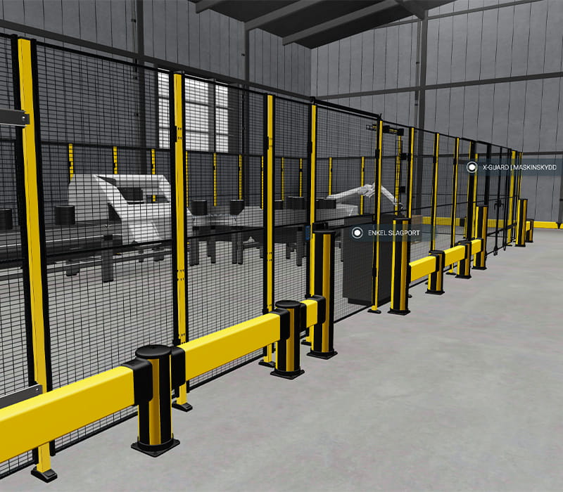 X-Guard er et svenskproduceret, modulært og genanvendeligt system. Det gør det muligt at tilpasse, flytte og genbruge komponenter ved ændringer i produktionen – hvilket reducerer materialespild og bidrager til en mere ressourceeffektiv industri.