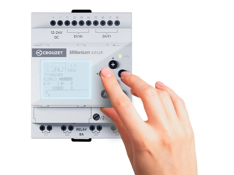 Den anvendes typisk inden for maskin- og tavlebygning samt bygningsautomation, hvor en Micro-PLC kan erstatte et stort antal separate komponenter og samtidig forenkle konstruktion og vedligehold.