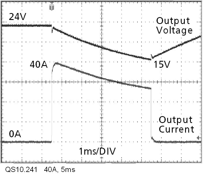 Bilden visar ett 10 A aggregat som lämnar 40 A i 5 ms.
