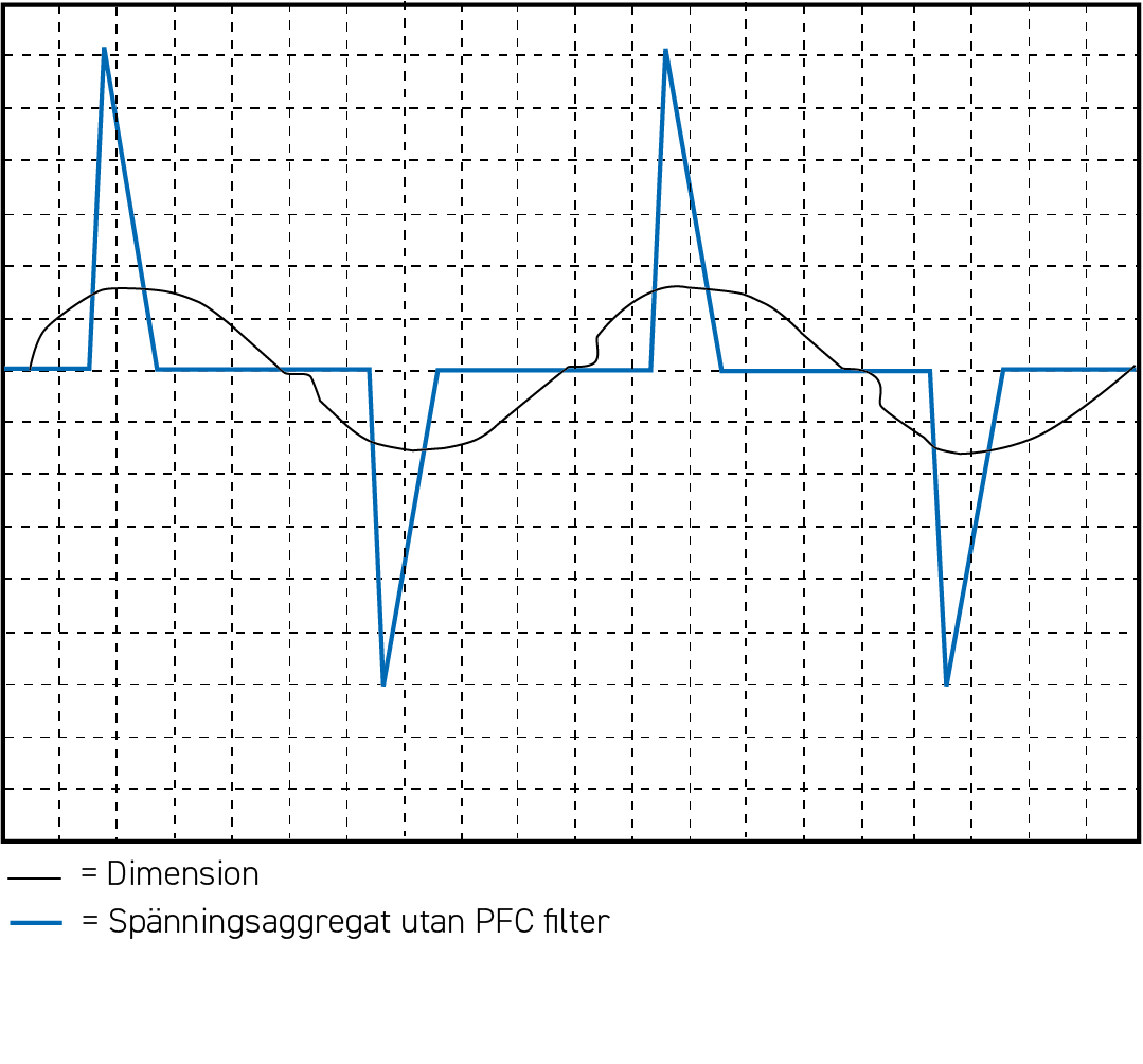 Dimension Q leverer efter peak strømmen en høj, konstant kortslutningsstrøm (op til 250 % af den nominelle værdi) i 4 sekunder, hvorefter den vender tilbage til sit nominelle niveau. Funktionen sikrer, at der ikke er risiko for varmgang i kabler, hvis sikringen ikke udløser eller mangler.