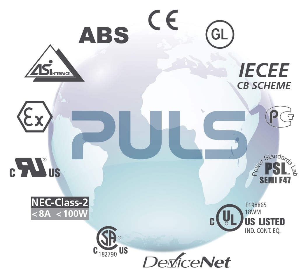 PULS har alle relevante godkendelser, der kræves for eksport. Mange strømforsyninger har