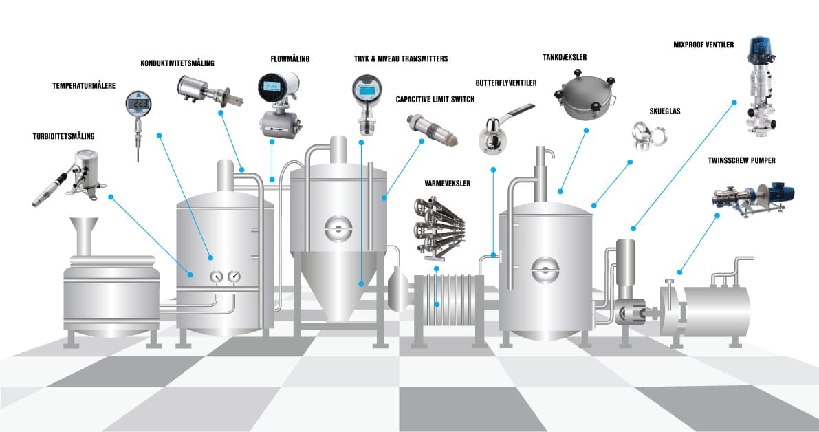 Varmevekslere, Linede rørdele, Slanger & Hygiejniske filtre, fittings, butterfly- og kugleventiler
