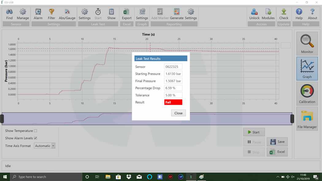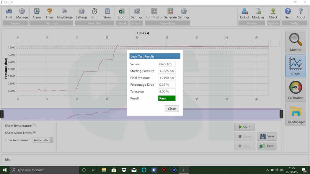 At udføre en lækagetest ved hjælp af ESI-USB-softwaren handler kun om at følge fem nemme trin;