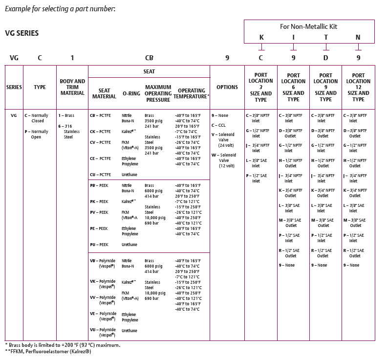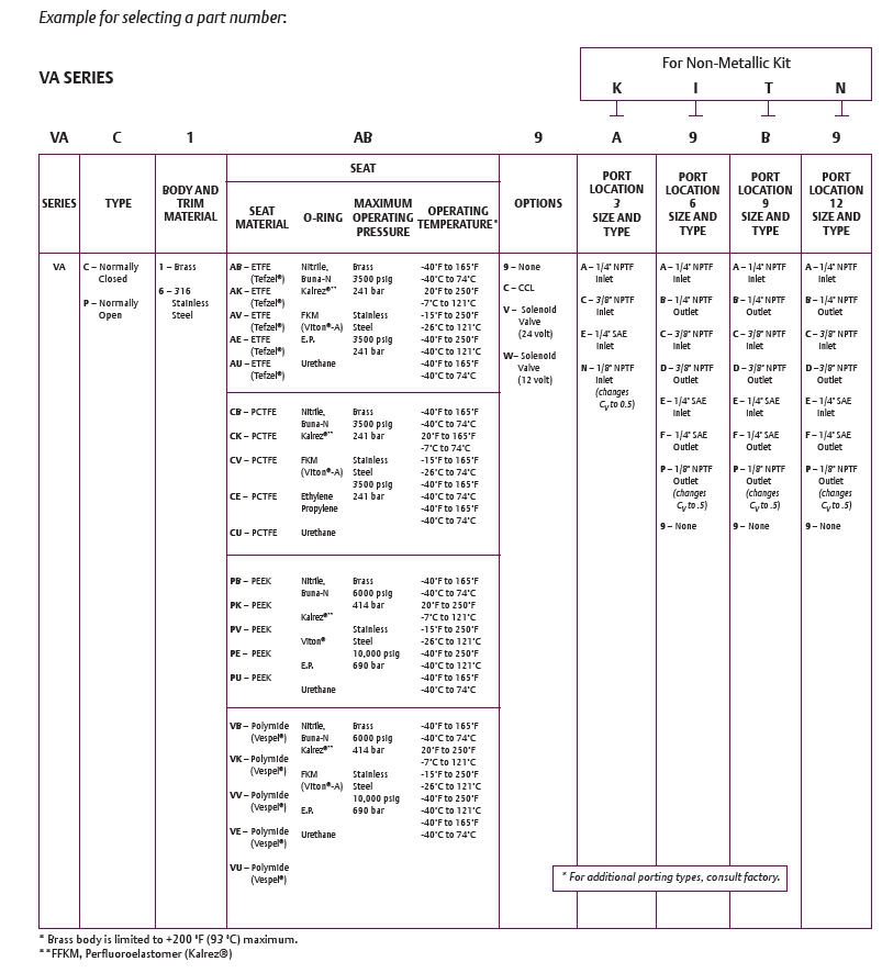 Tescom’s VA og VG serie er pålidelige og stabile, luftstyrede ventiler til højt tryk. VA er til det mindre flow og VG kan bruges ved højt flow. Serierne fås i 316 rustfri stål eller messing og med utallige kombinationer af materialer for de interne dele, forskellige portstørrelser og som normally open og normally closed. Som option kan de fås med integreret magnetventil og der findes også en version til Oxygen. Ventilerne kan med fordel bruges i applikationer med hydrogen,til test cyklus’er med højt tryk, til pneumatiske og hydrauliske kontrolpaneler og i R&D laboratorier.